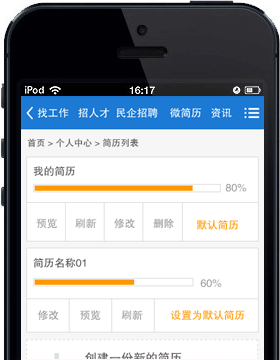 及時刷新簡歷信息,使求職更加高效,使您不再錯過任何一個機會。